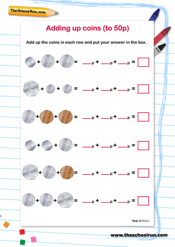 Using these sheets will help your child to. Amounts up to 20p for 2p coins 50p for 5p coins and 90p in 10p coins.